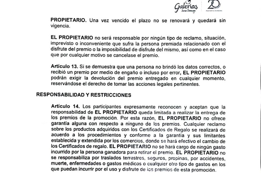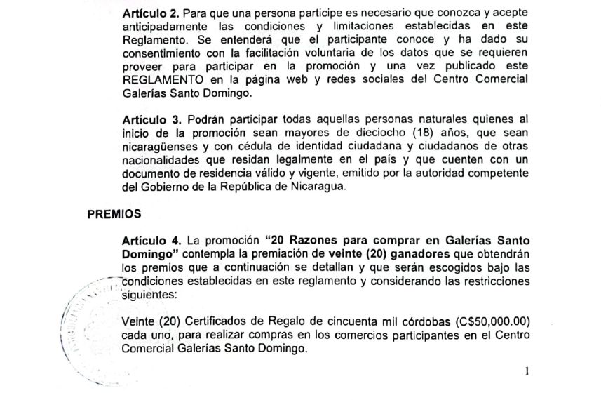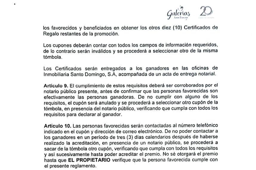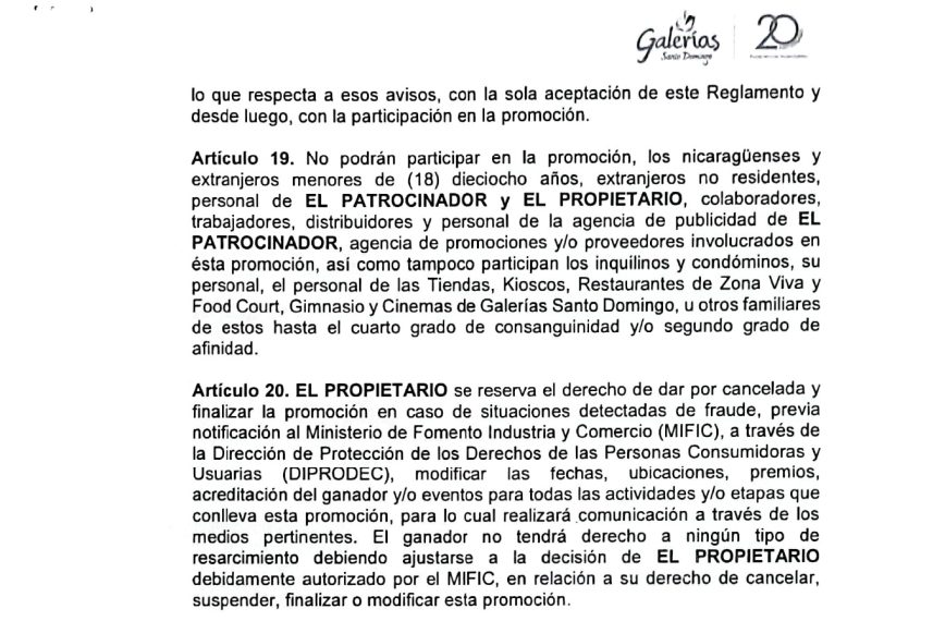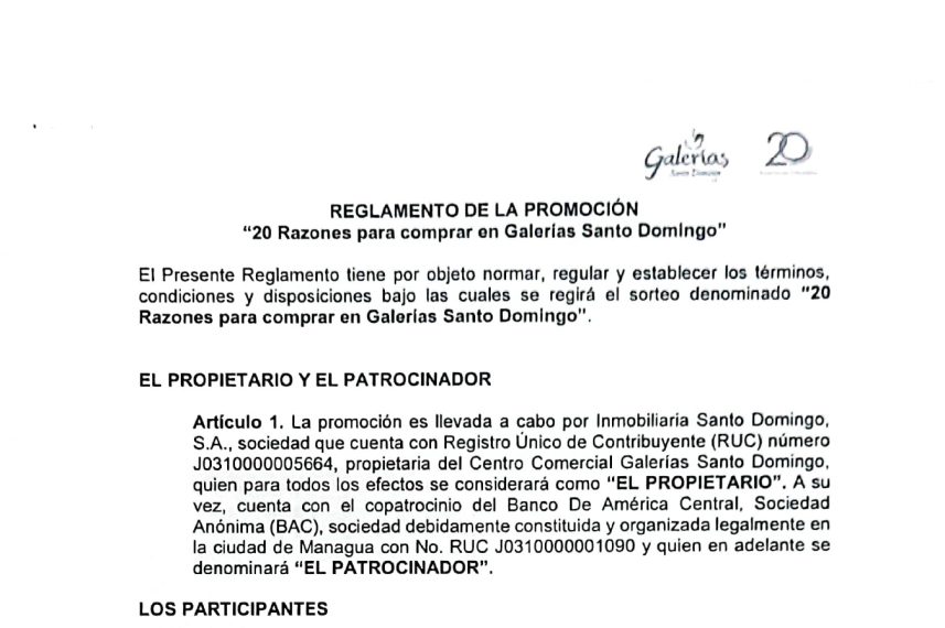 Reglamento de la promoción 20 Razones para comprar en Galerías Santo Domingo
